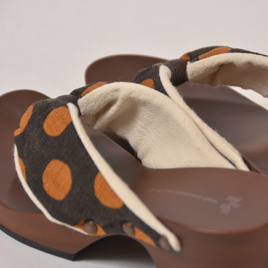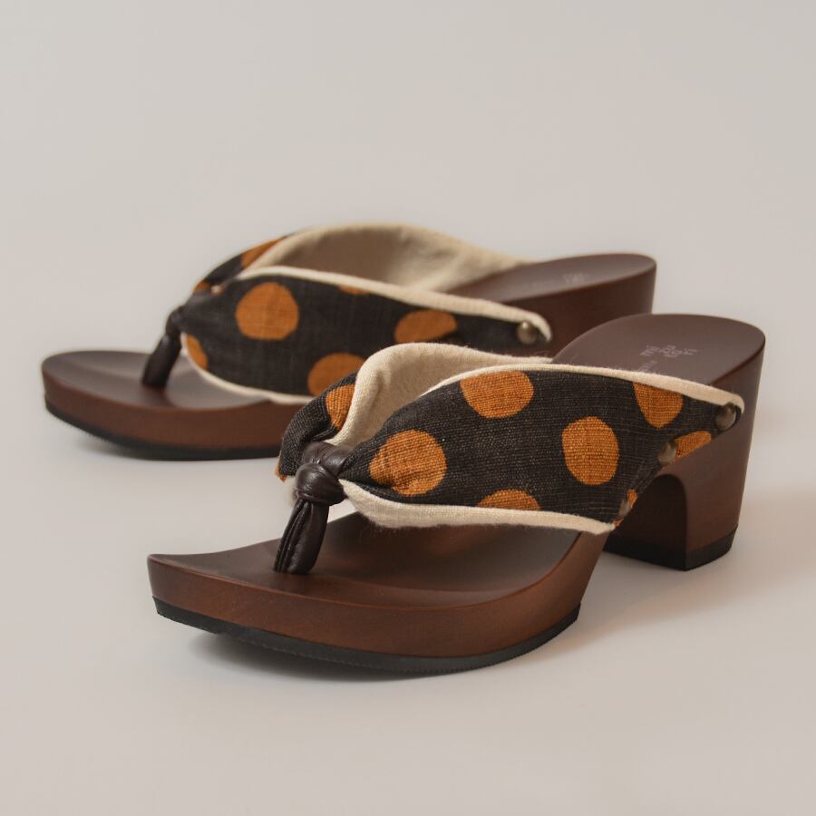 ブランド:水鳥工業 商品番号:KCW-22 商品名:hitete 6.5cmヒール 色(柄):本山茶染・茶の実/生成・シフォンカーフ茶 (m2 鷲巣恭一郎) サイズ[JP/cm]:SS(21-21.5)/S(22-22.5)/M(23-23.5)/L(24-24.5)/LL(25-25.5) ヒール:6.5cm 素材:木材、その他 生産国:日本 納期:受注生産品につき季節により異なる。 ・9月~4月:10日~2週間前後で発送 ・5月~8月: 2週間~1ヶ月前後で発送 ヒールが苦手な方でも気にならない、履き心地の良さ。洋服にも合わせやすい、サンダル感覚のシルエット。水鳥の一番人気シリーズです。 水鳥工業は日本一の履き心地を目指す下駄メーカー。ヒール付きやサボタイプ、下駄作りの技術を活かしたサンダル等、革新的な履物を生み出します。 【色(柄)違いについて】 こちらの製品は、色(柄)ごとに販売ページが異なります。また、掲載画像の一部には、他色(柄)の画像を使用している場合がございます。予めご了承ください。 【世界に一つだけ】 木肌の色味や節の有無は、それぞれ一点づつ異なります。柄鼻緒は、大きな生地から小さな鼻緒を切り出すので、柄の出かたが異なります。水鳥の下駄は、それぞれが世界に一つだけの作品です。どうぞご理解いただける方のみ、ご注文ください。