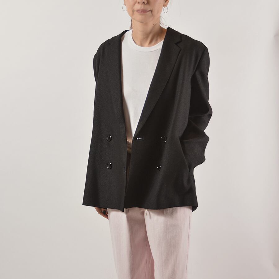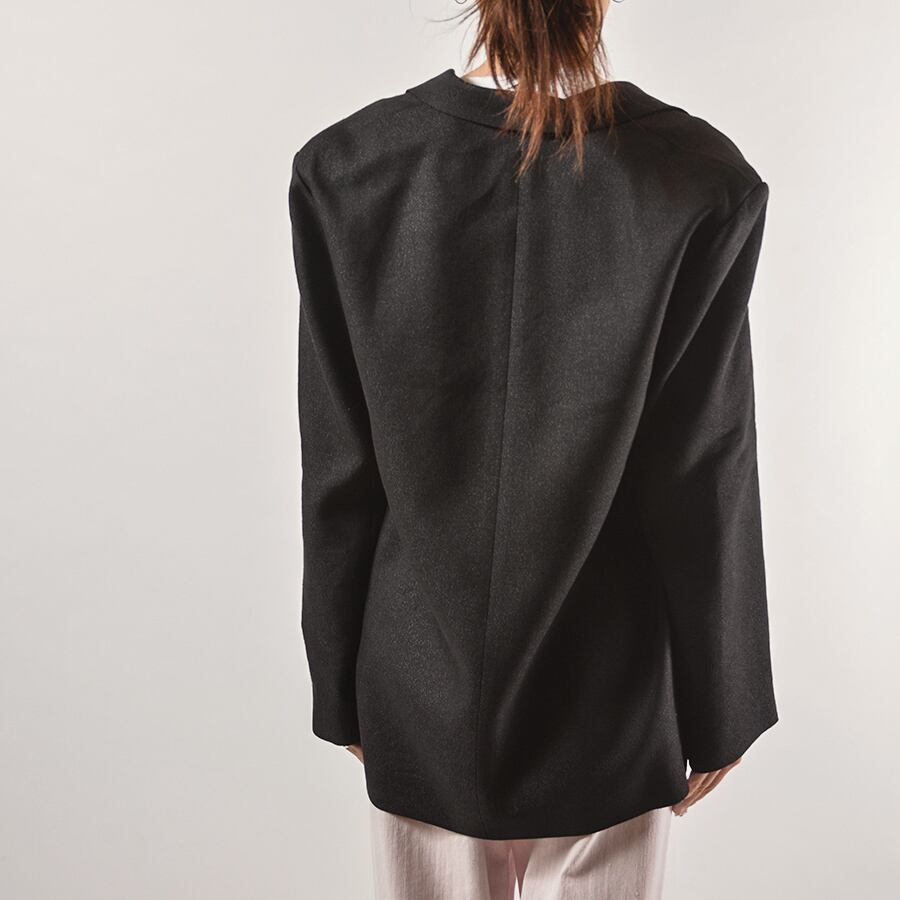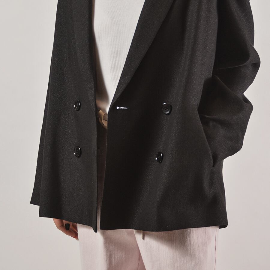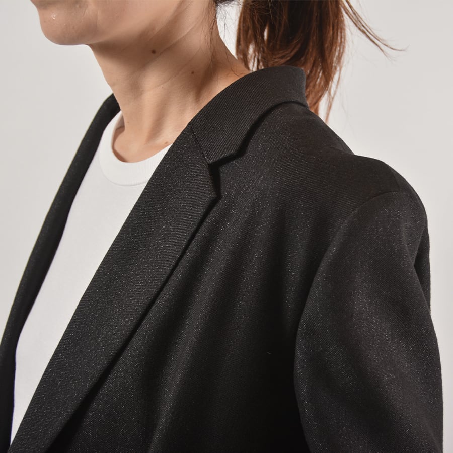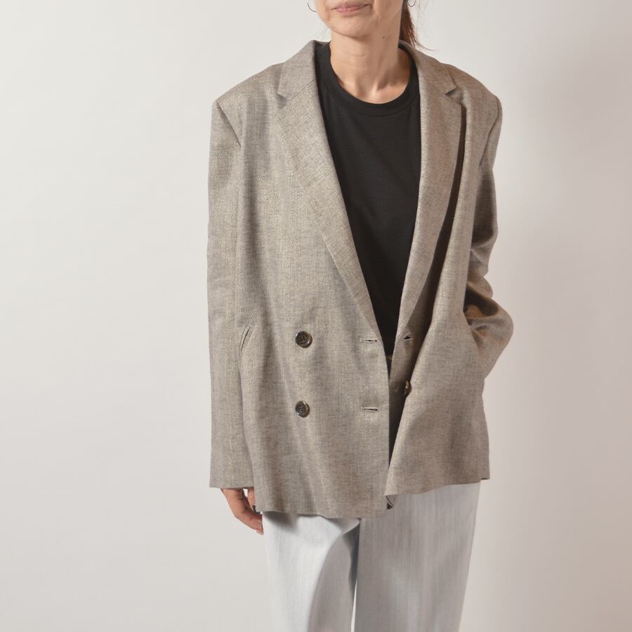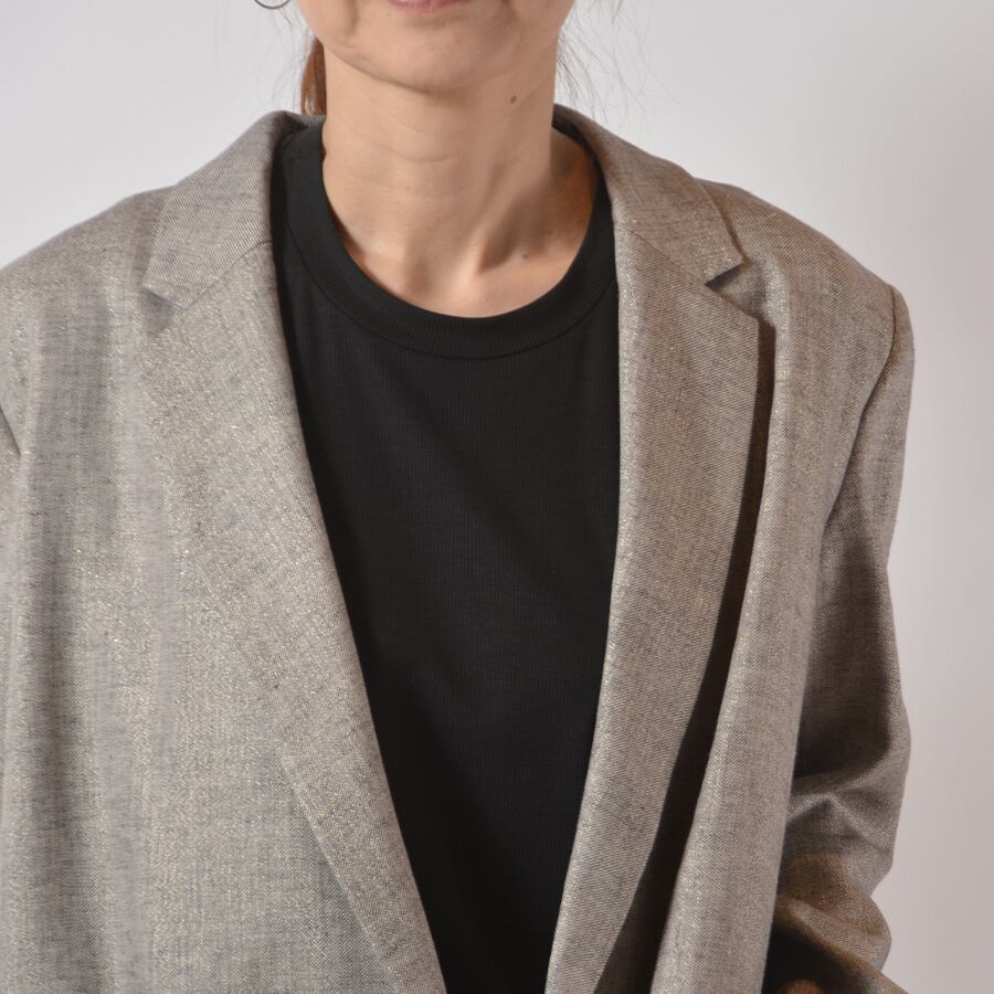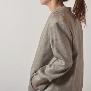ラメを混ぜて華やかな印象をプラスした麻のジャケット。たっぷりとしたシルエットでリラックス感がある着こなしがおすすめ。さらっと羽織ってカッコ良い、大人な背抜きジャケット。