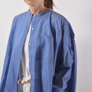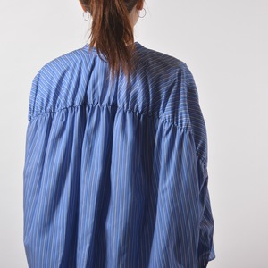 ゆったりドルマンスリーブのストライプシャツ。密に織られた滑らかな薄手のシャツ生地は動きも綺麗。背中のギャザーから生まれるドレープも魅力です。