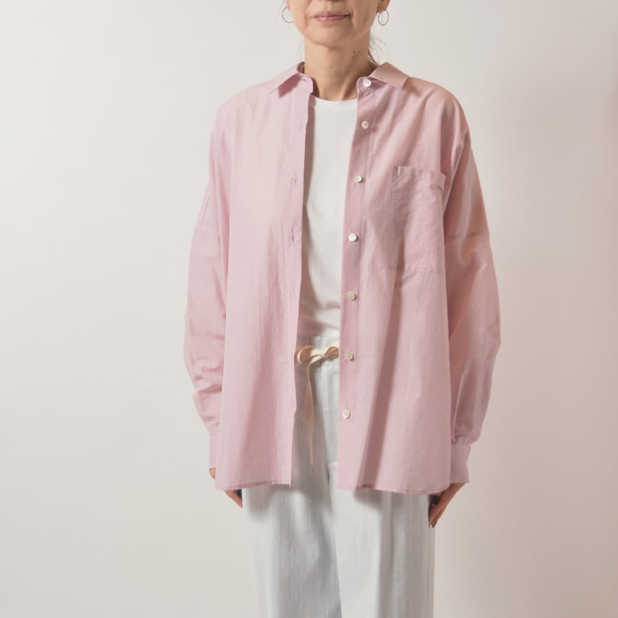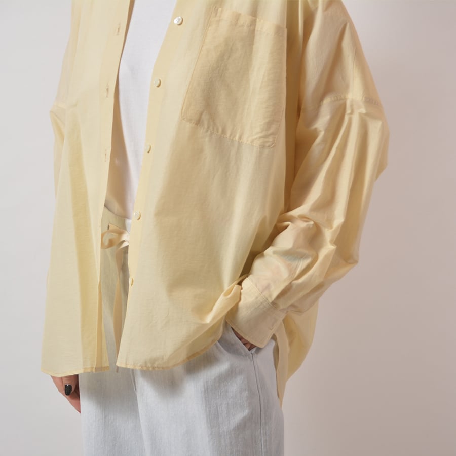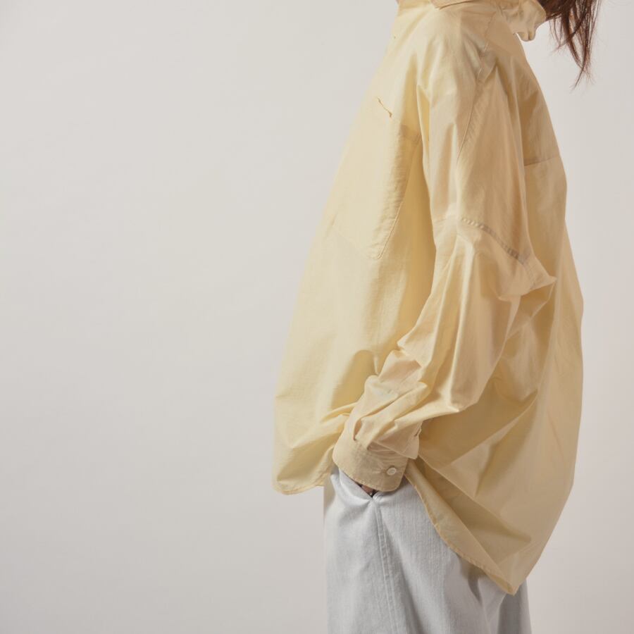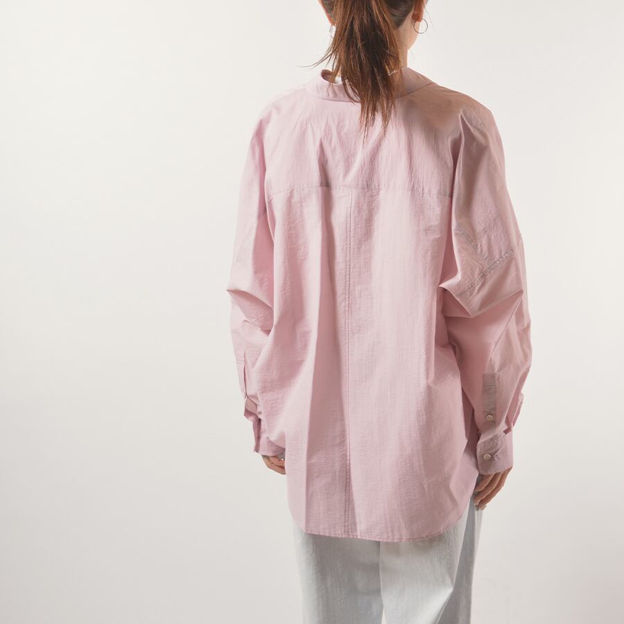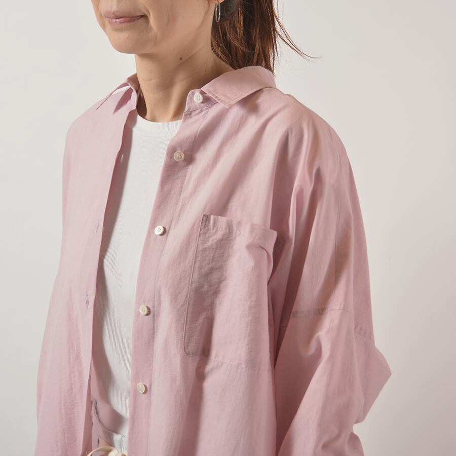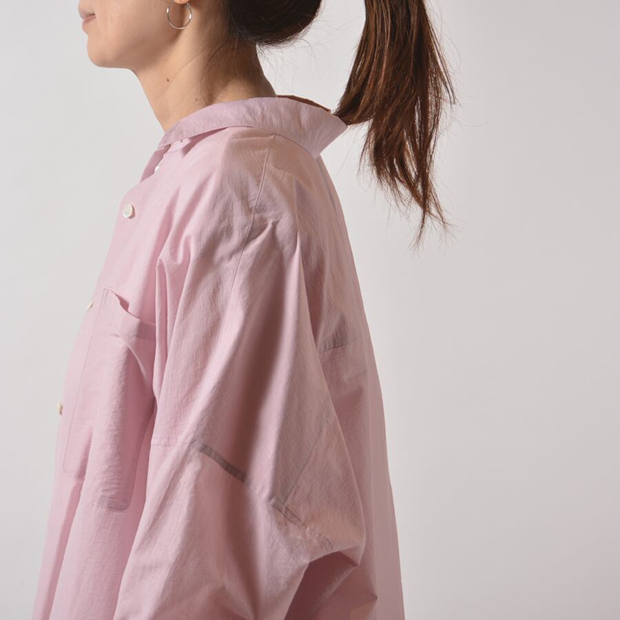 こなれた印象のシワ感があるコットン&ナイロンの薄手生地。ワイドな身幅と大きめの胸ポケットで、さらっとした春らしいシャツです。