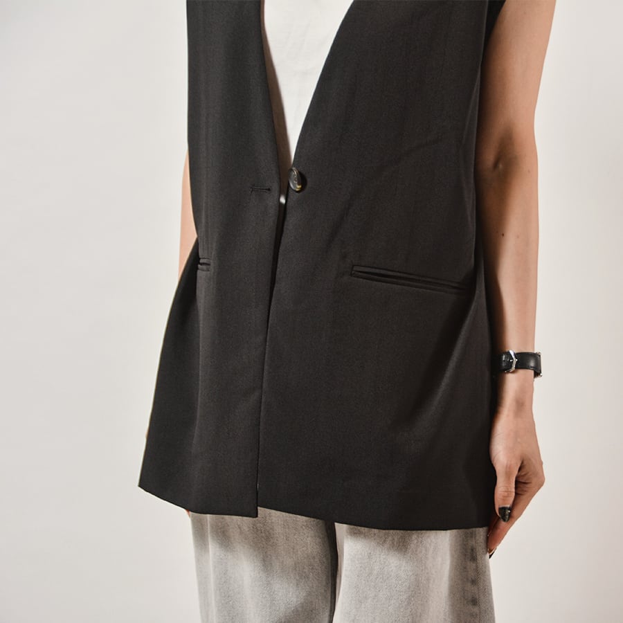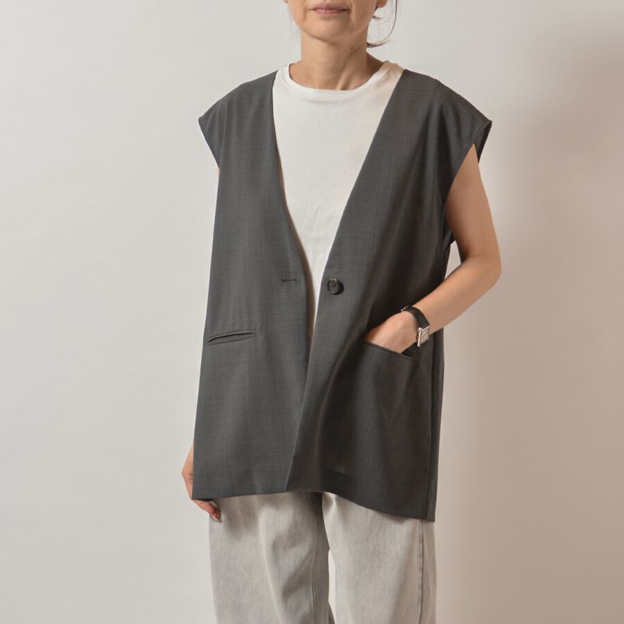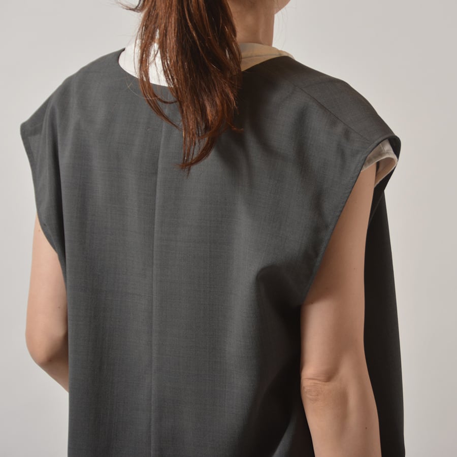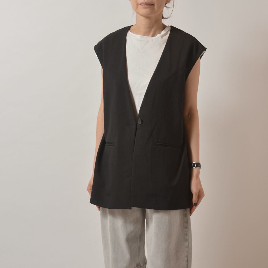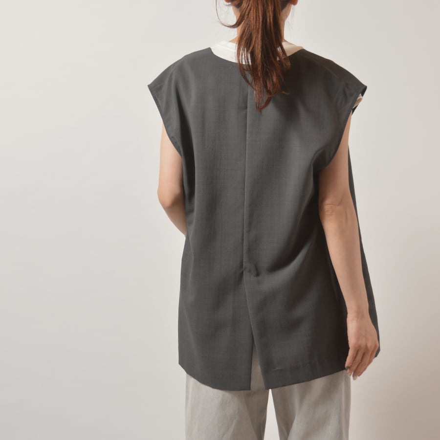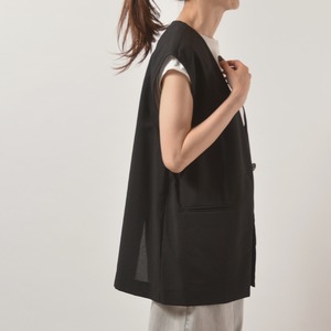 さらさらの肌触りで、動きが綺麗な薄手ジョーゼットのVネックジレ。