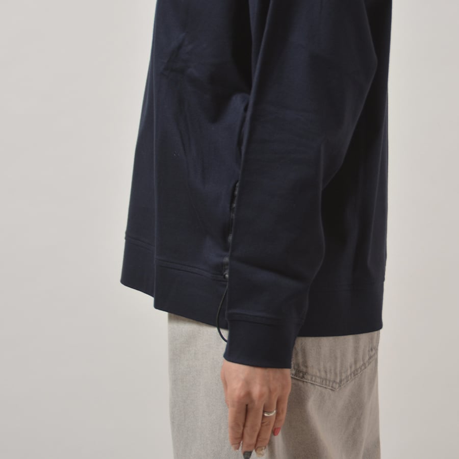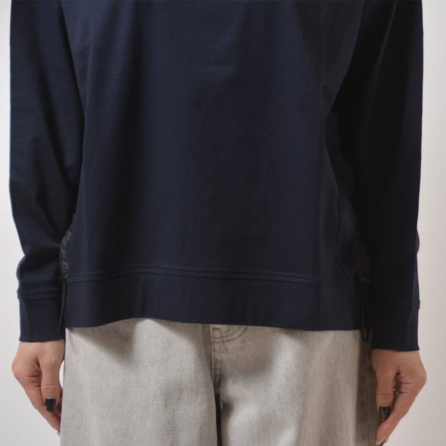 サイドにゴム紐を通したアジャスター付きで、ギャザーの調整ができるカットソー。ラグランのゆったりしたシルエットで、着心地の良いカットソーです。