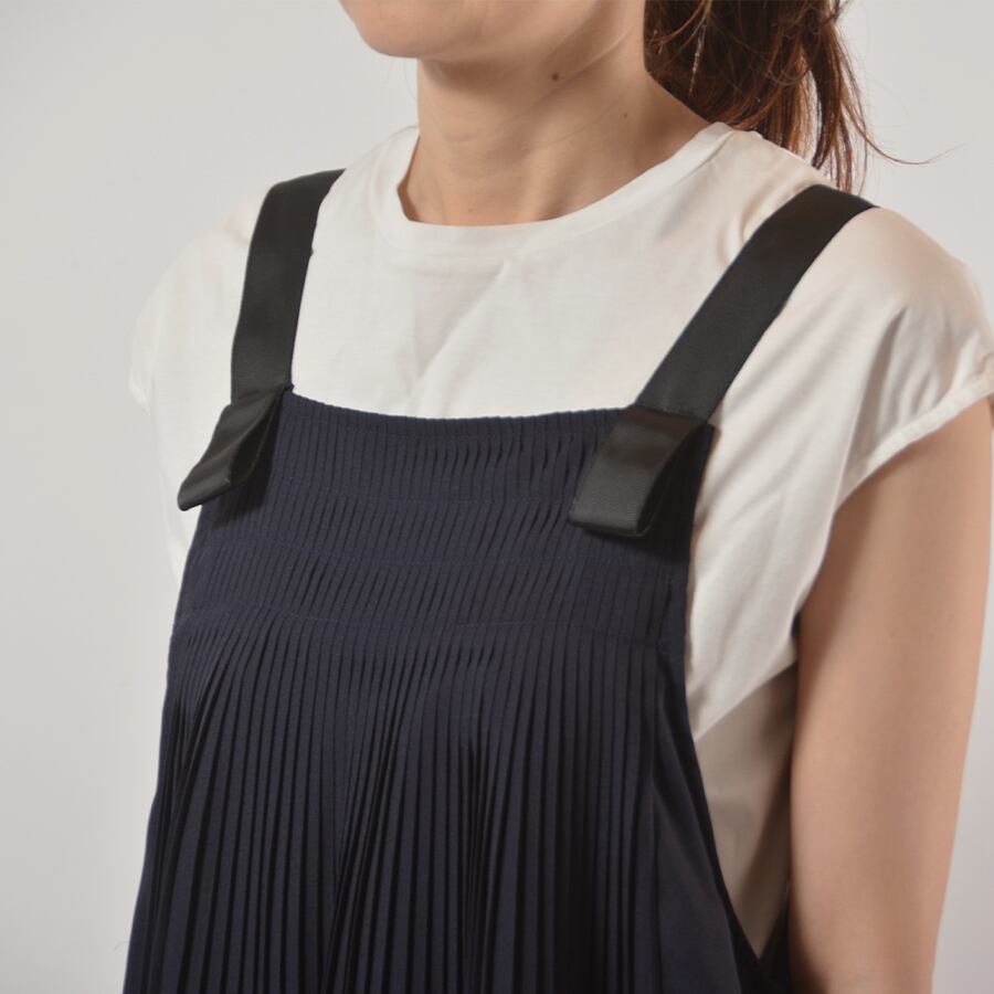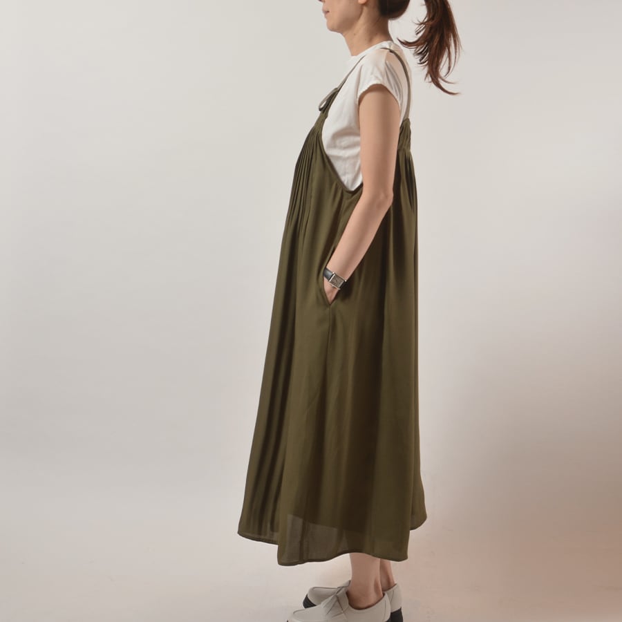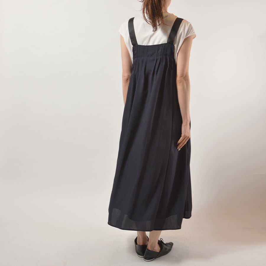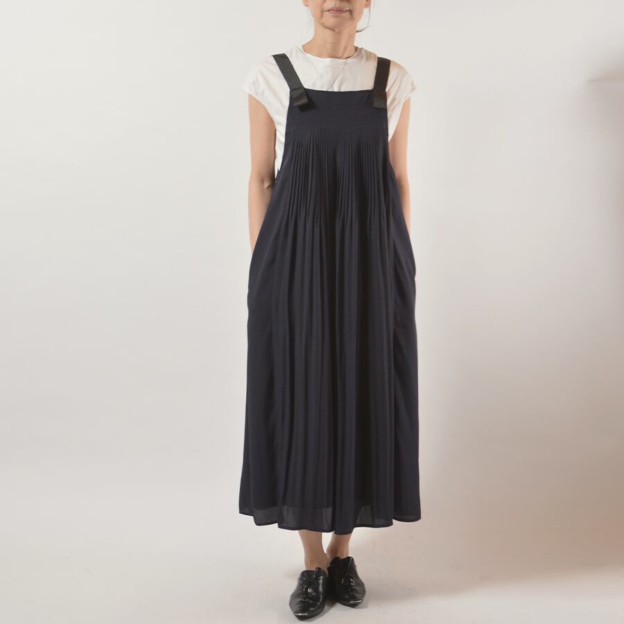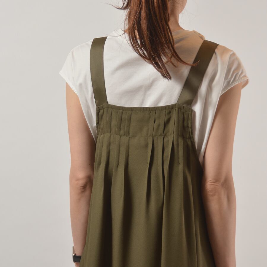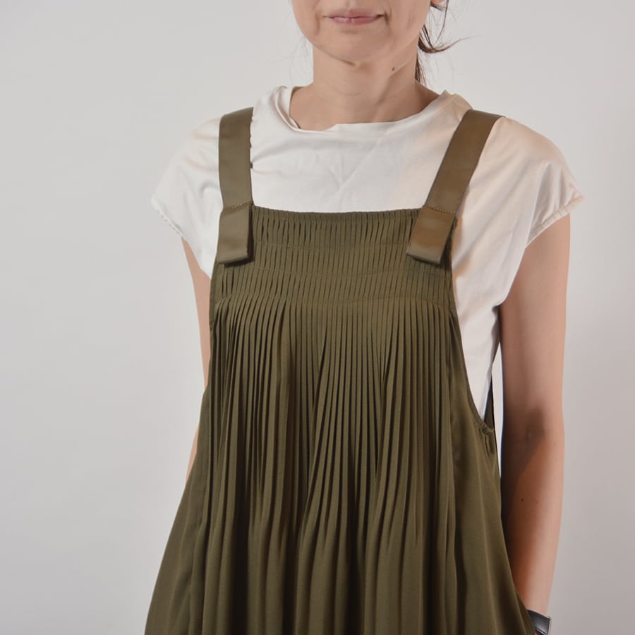 胸元に細かく、背中には少し太くプリーツを入れたジャンパースカート。動きが綺麗な柔らかい素材です。