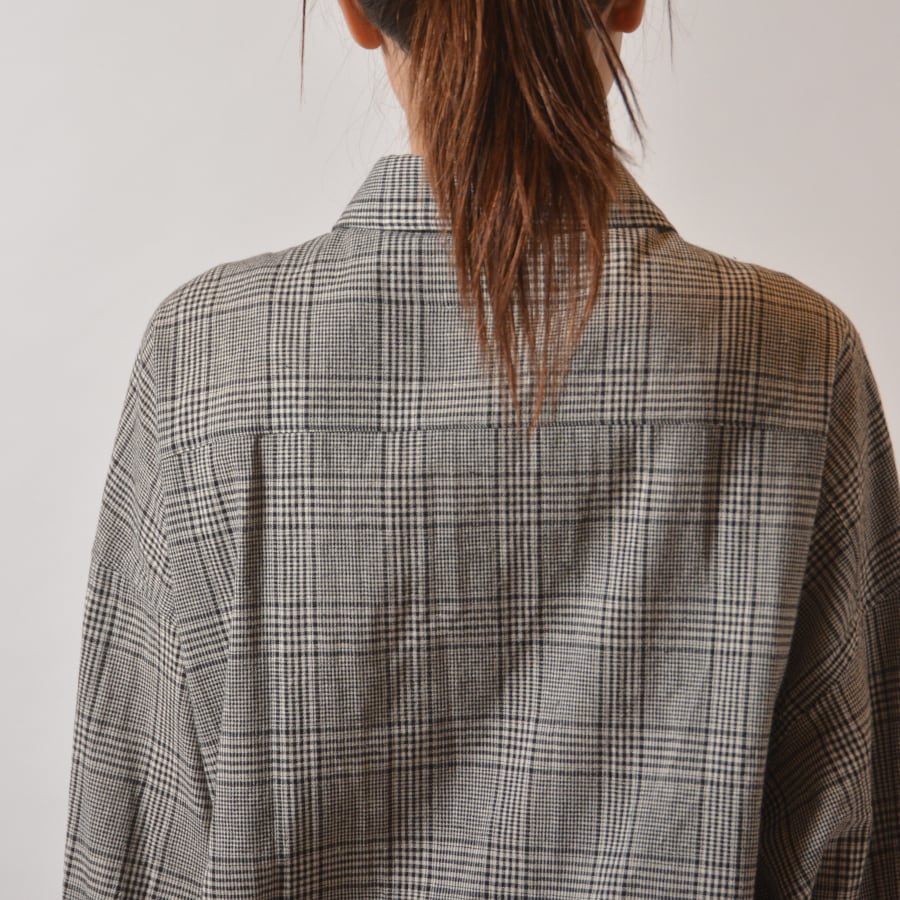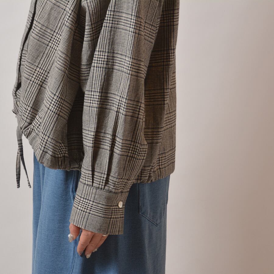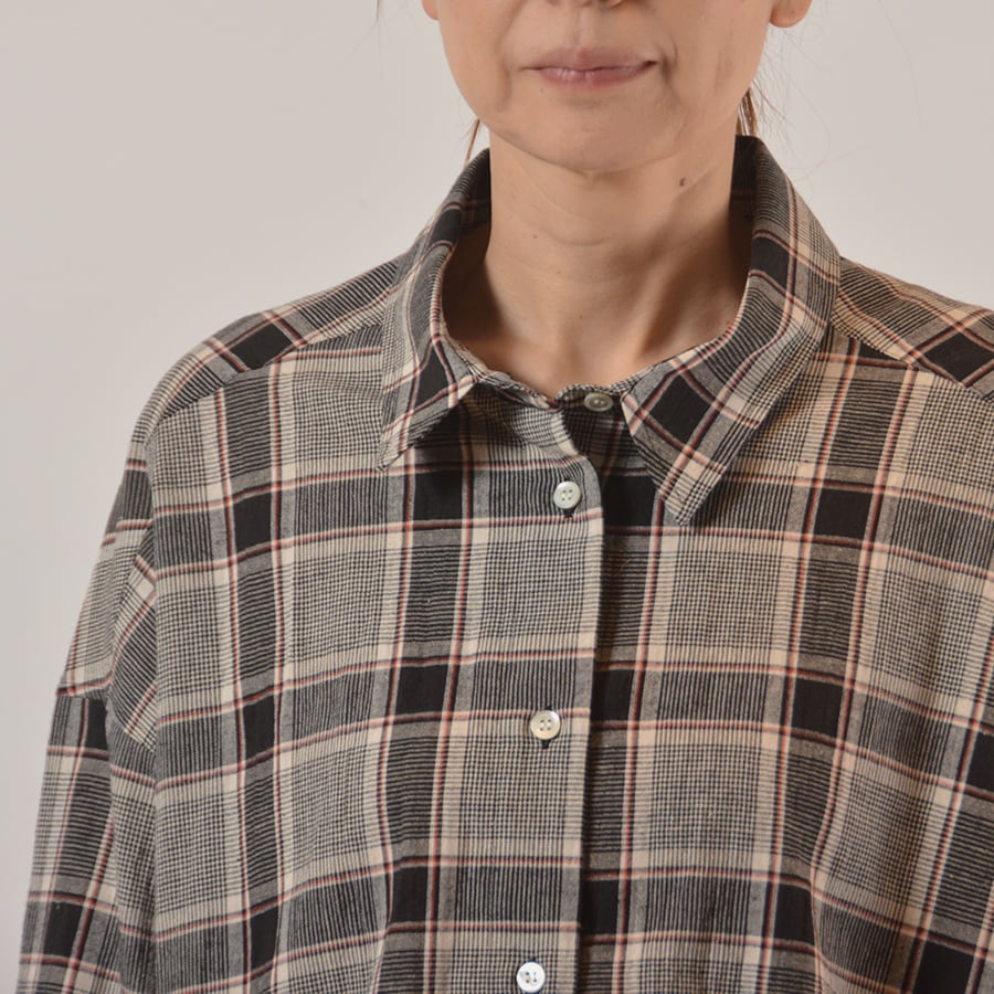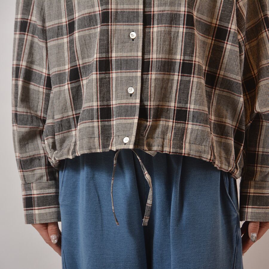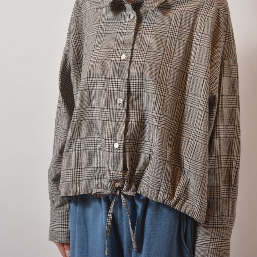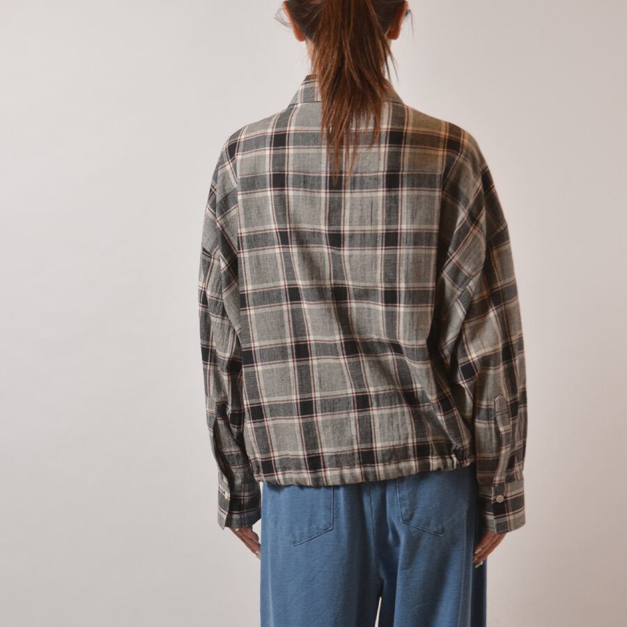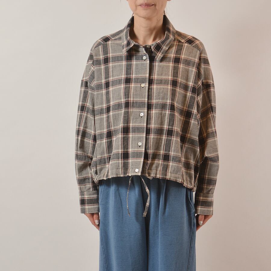裾に同生地のコードを通したチェックシャツ。麻混ならではの上質な表情がある、大人のカジュアルシャツです。