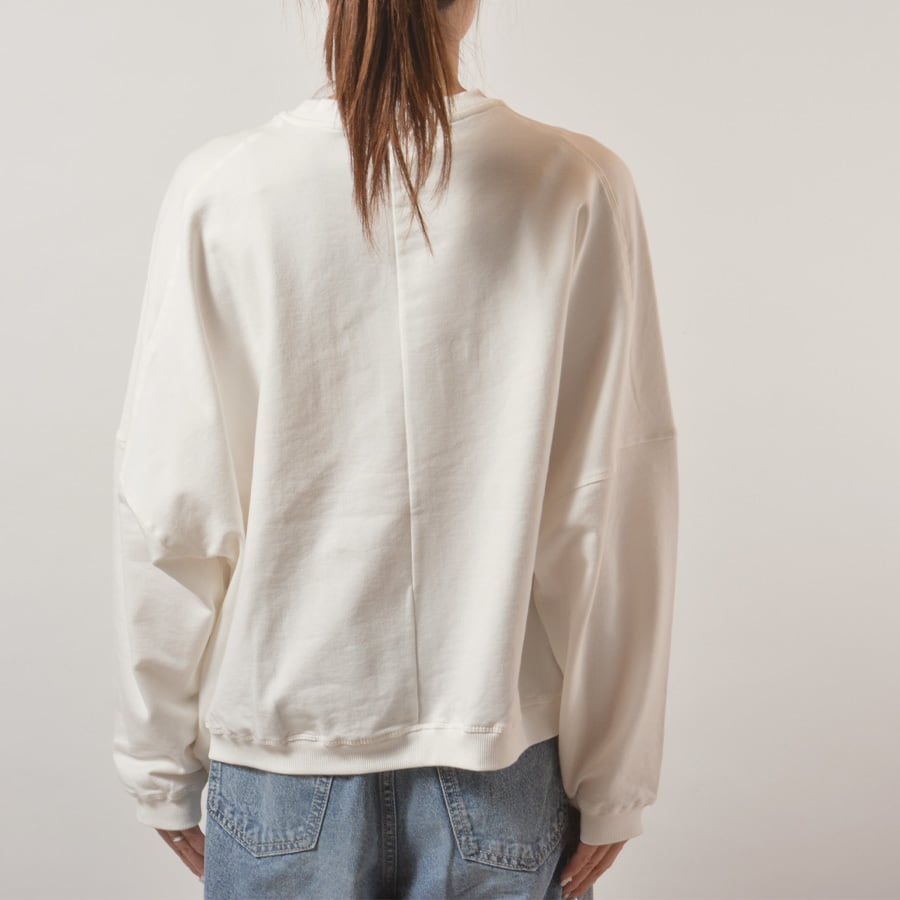 もこもこと立体感があるブラシのカットソー。ドルマン風のゆとりがあるサイズ感です。