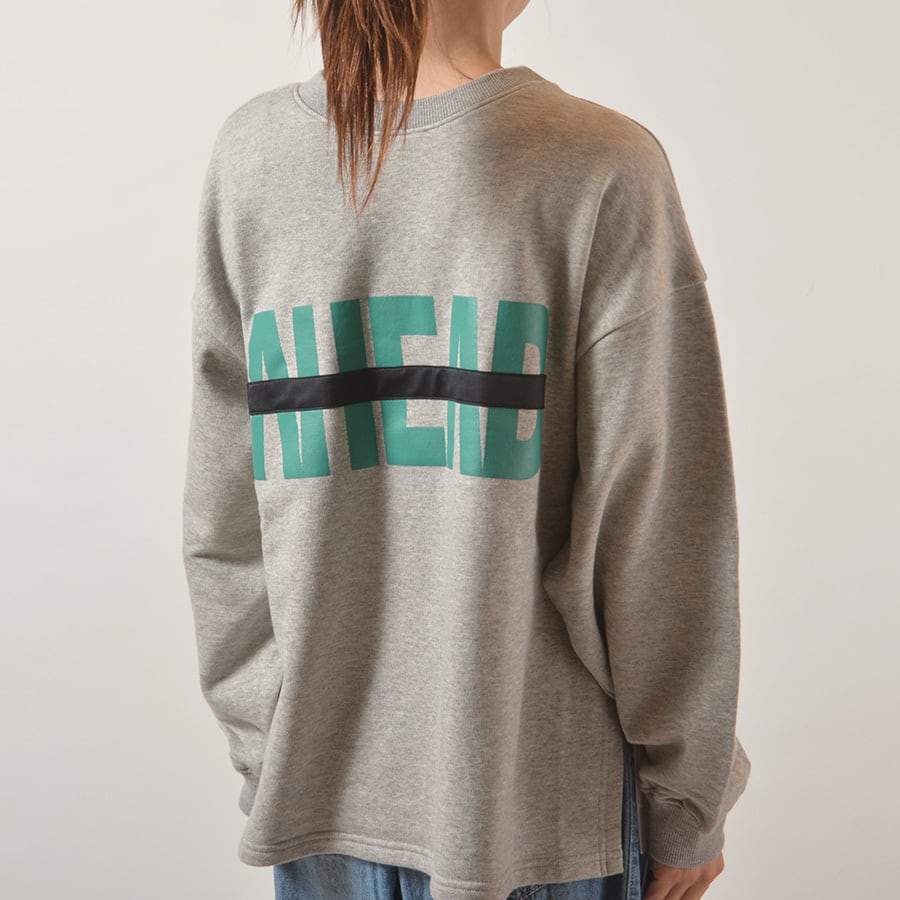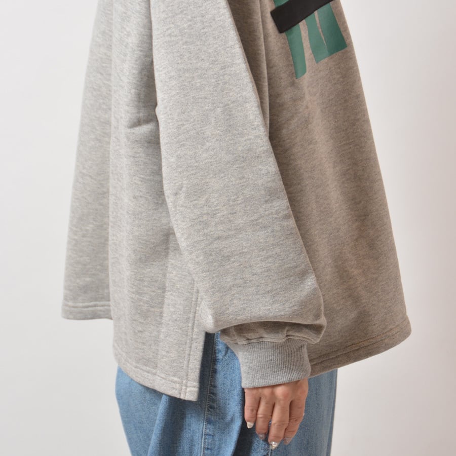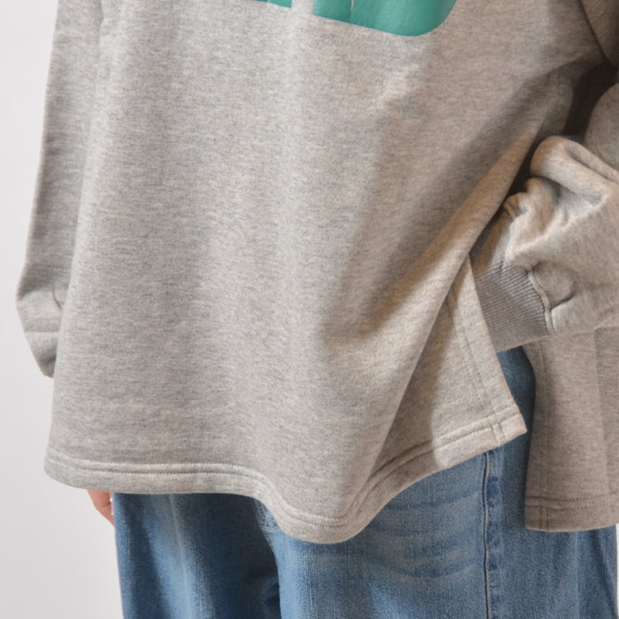 フロントプリント、バックプリントのどちらでも着られる2ウェイカットソー。裏ループ起毛の綿100%、サイドスリット入りトレーナーです。