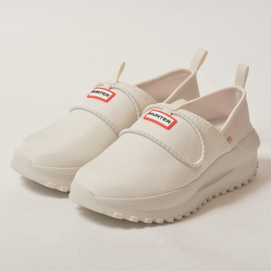 コードを通したデザインで、アクティブな印象を与えるスリッポン。踵を踏んでサッと履けるので、お庭やキャンプ、またオフィスや店内で使う室内履きにも人気です。