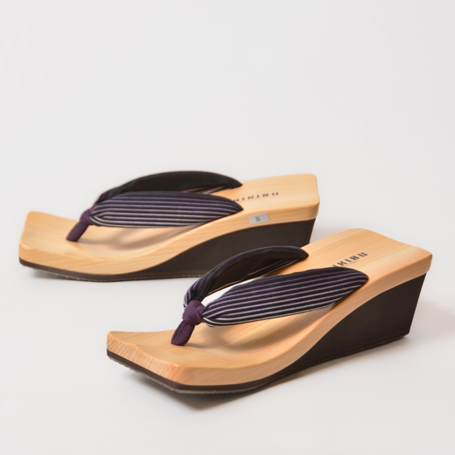 ブランド:水鳥工業 商品番号:SH-17 商品名:SHIKIBU SH-17 色(柄):紫流 / 紫 サイズ[JP/cm]:S(22-22.5)/M(23-23.5)/L(24-24.5) ヒール:6.5cm 素材:木材(檜)、その他 生産国:日本 納期:受注生産品につき季節により異なる。 ・9月~4月:10日~2週間前後で発送 ・5月~8月: 2週間~1ヶ月前後で発送 浴衣や着物はもちろん、お洋服にも合うシンプルなデザイン。日本の伝統的な形がモダンな雰囲気を演出します。 水鳥工業は日本一の履き心地を目指す下駄メーカー。ヒール付きやサボタイプ、下駄作りの技術を活かしたサンダル等、革新的な履物を生み出します。 【色(柄)違いについて】 こちらの製品は、色(柄)ごとに販売ページが異なります。また、掲載画像の一部には、他色(柄)の画像を使用している場合がございます。予めご了承ください。 【世界に一つだけ】 木肌の色味や節の有無は、それぞれ一点づつ異なります。柄鼻緒は、大きな生地から小さな鼻緒を切り出すので、柄の出かたが異なります。水鳥の下駄は、それぞれが世界に一つだけの作品です。どうぞご理解いただける方のみ、ご注文ください。