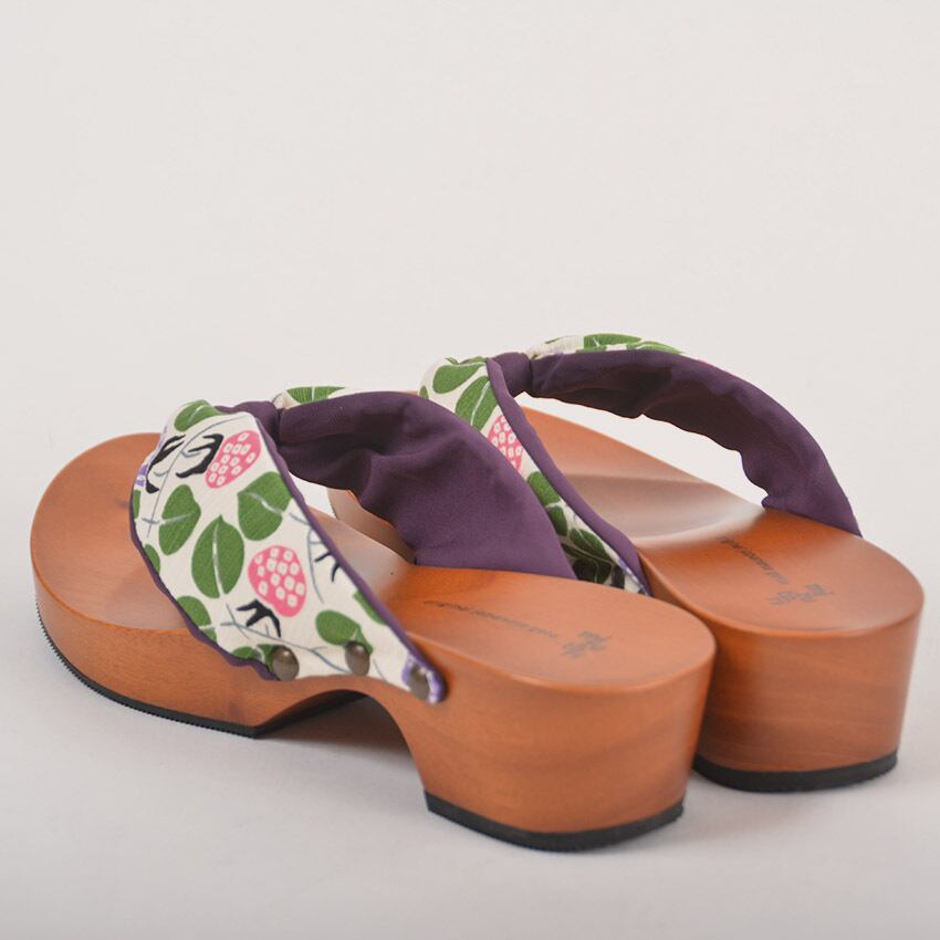 ブランド:水鳥工業 商品番号:KT-51 商品名:hitete 4.5cmヒール 色(柄):いちご/紫・紫(むす美) サイズ[JP/cm]:SS(21-21.5)/S(22-22.5)/M(23-23.5)/L(24-24.5)/LL(25-25.5) ヒール:4.5cm 素材:木材、その他 生産国:日本 納期:受注生産品につき季節により異なる。 ・9月~4月:10日~2週間前後で発送 ・5月~8月: 2週間~1ヶ月前後で発送 より安定感がある履き心地を求める方にオススメの4.5cmヒールシリーズ。日常からお出かけまで、マルチに活躍する1足です。 水鳥工業は日本一の履き心地を目指す下駄メーカー。ヒール付きやサボタイプ、下駄作りの技術を活かしたサンダル等、革新的な履物を生み出します。 【色(柄)違いについて】 こちらの製品は、色(柄)ごとに販売ページが異なります。また、掲載画像の一部には、他色(柄)の画像を使用している場合がございます。予めご了承ください。 【世界に一つだけ】 木肌の色味や節の有無は、それぞれ一点づつ異なります。柄鼻緒は、大きな生地から小さな鼻緒を切り出すので、柄の出かたが異なります。水鳥の下駄は、それぞれが世界に一つだけの作品です。どうぞご理解いただける方のみ、ご注文ください。